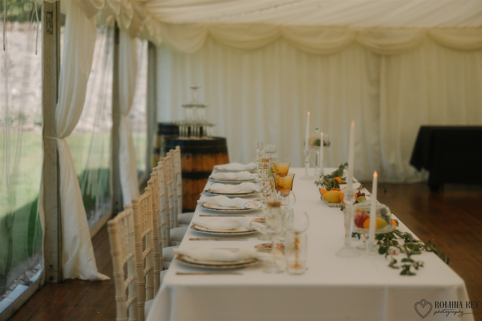 The venue sits within a beautifully maintained walled garden, only a short walk from the historic Seton Collegiate Church, whose striking silhouette forms a stunning backdrop for ceremonies and photographs. The combination of lush greenery, open skies, and historic character makes Seton Garden an unforgettable setting for weddings, receptions, and private celebrations.
